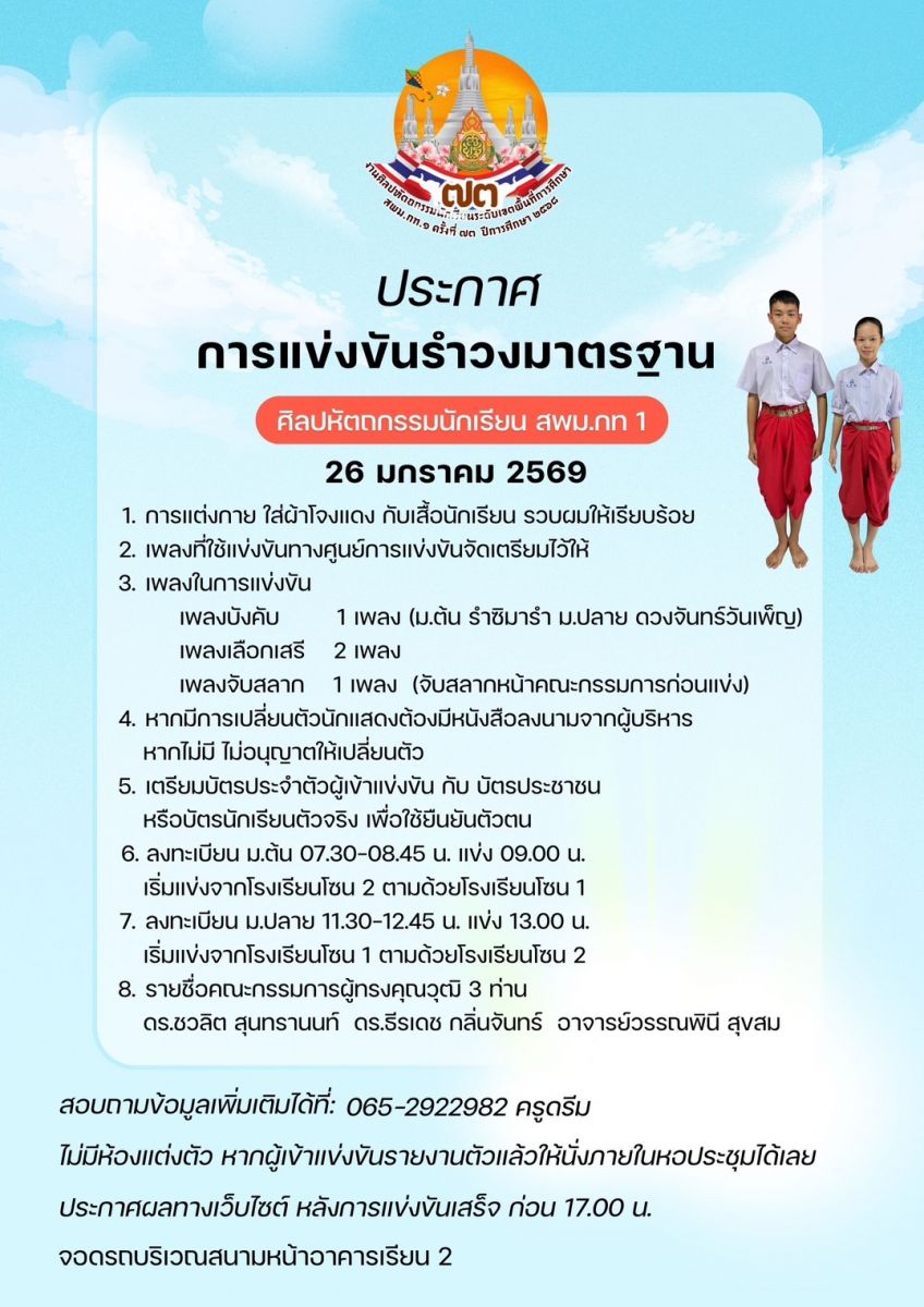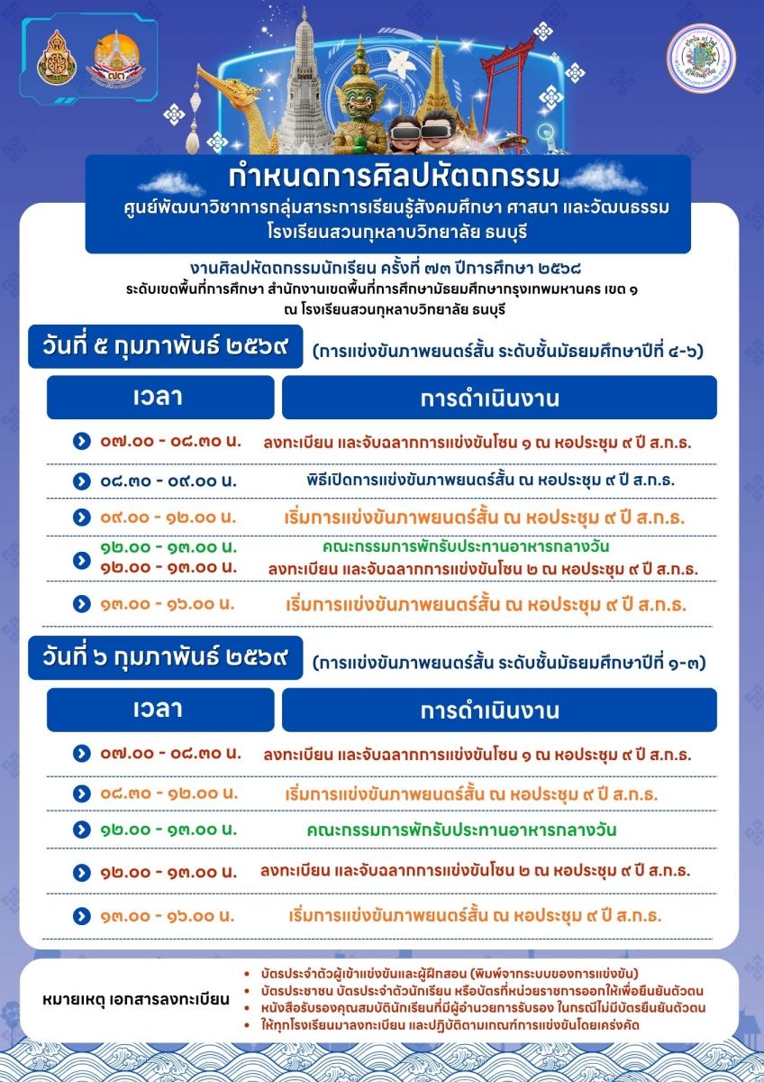 เกณฑ์การแข่งขัน  กำหนดการแข่งขัน ในวันที่ 5 กุมภาพันธ์ 2569 ณ โรงเรียนบางมดวิทยา "สีสุกหวาดจวนอุปถัมภ์"