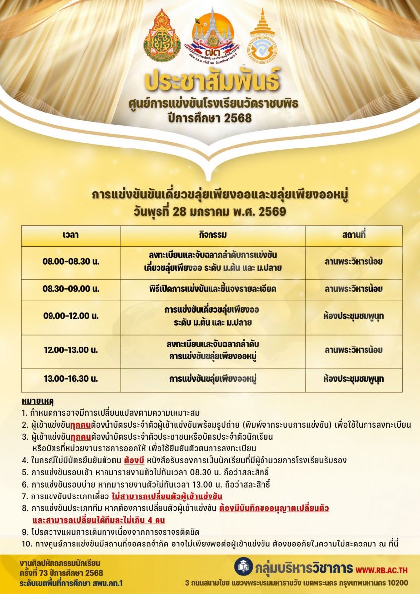 <<<โปรดศึกษารายละเอียด และข่าวสารจากทางหน้าเว็บไซต์ จากศูนย์แข่งขัน>>>