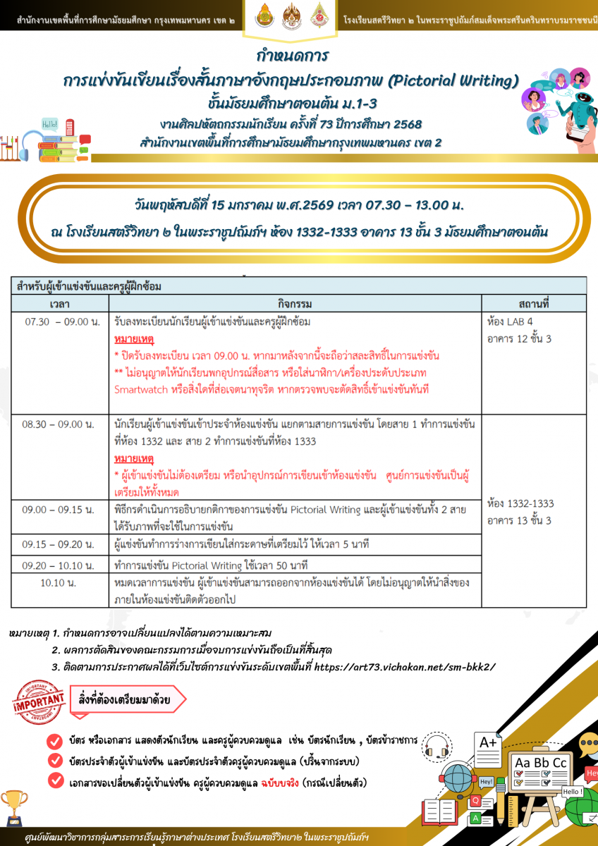หมายเหตุ โรงเรียนที่เข้าร่วมการแข่งขัน ต้องลงทะเบียนการแข่งขันให้ครบถ้วน