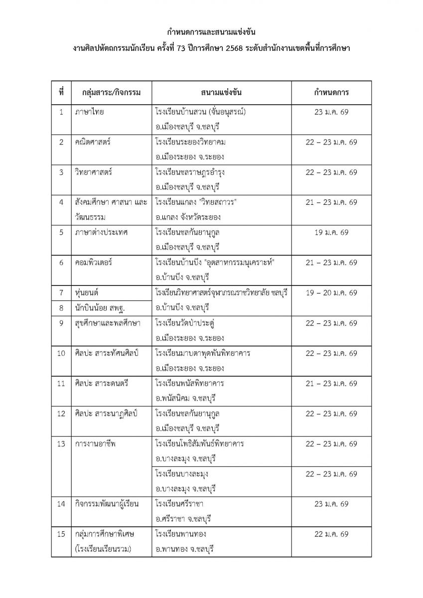 งานศิลปหัตถกรรมนักเรียน ครั้งที่ 73 ปีการศึกษา 2568 ระดับสำนักงานเขตพื้นที่การศึกษา สพม.ชลบุรี ระยอง
