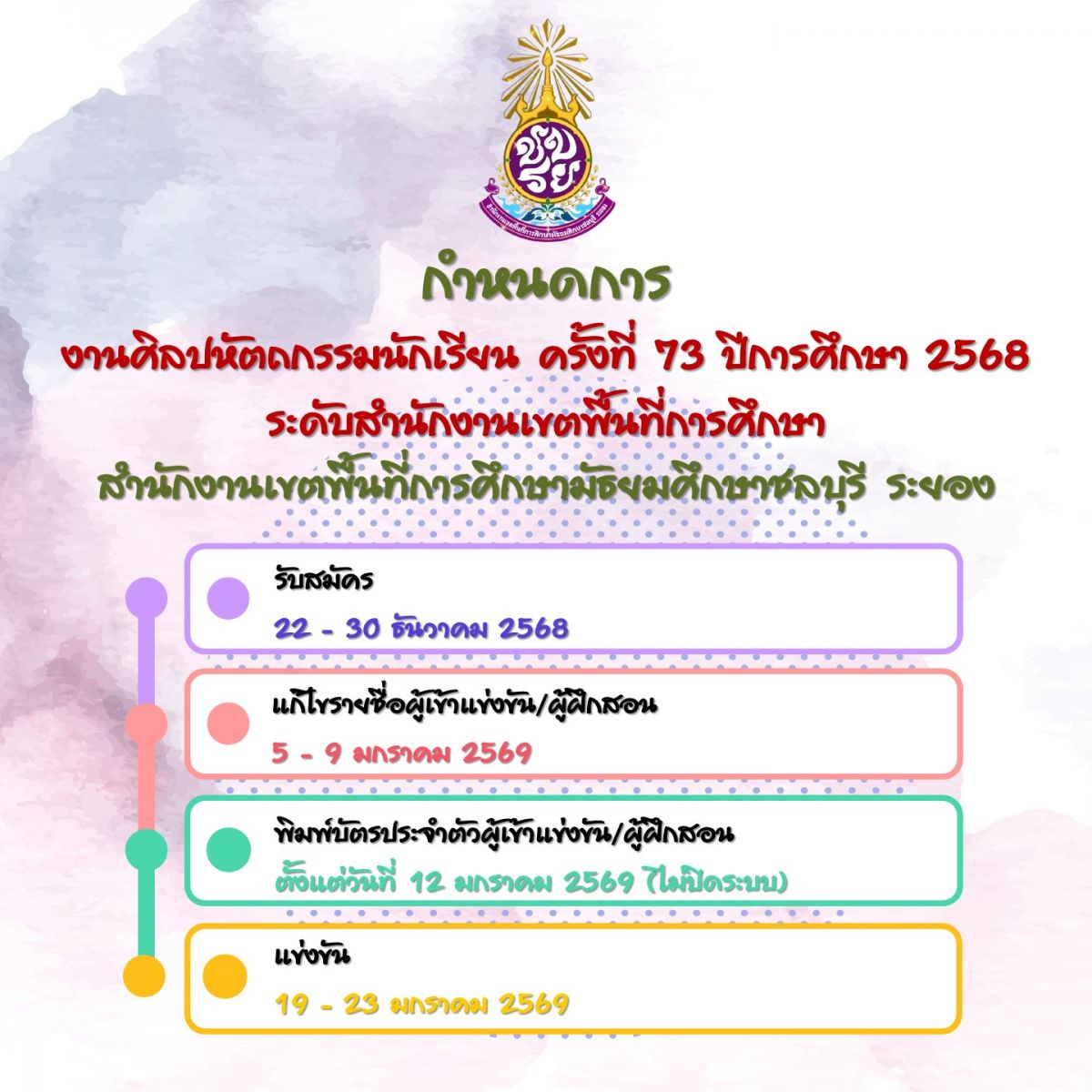 รายละเอียดการแข่งขันงานศิลปหัตถกรรมนักเรียนครั้งที่ 73 ปีการศึกษา 2568