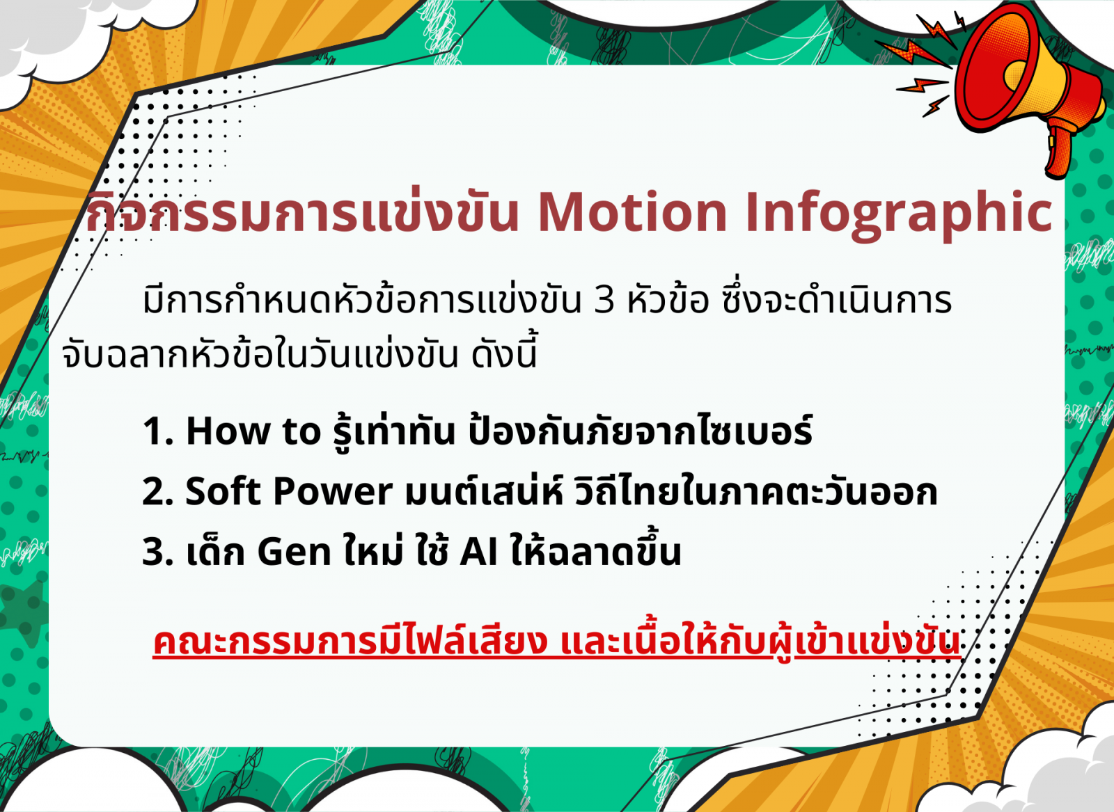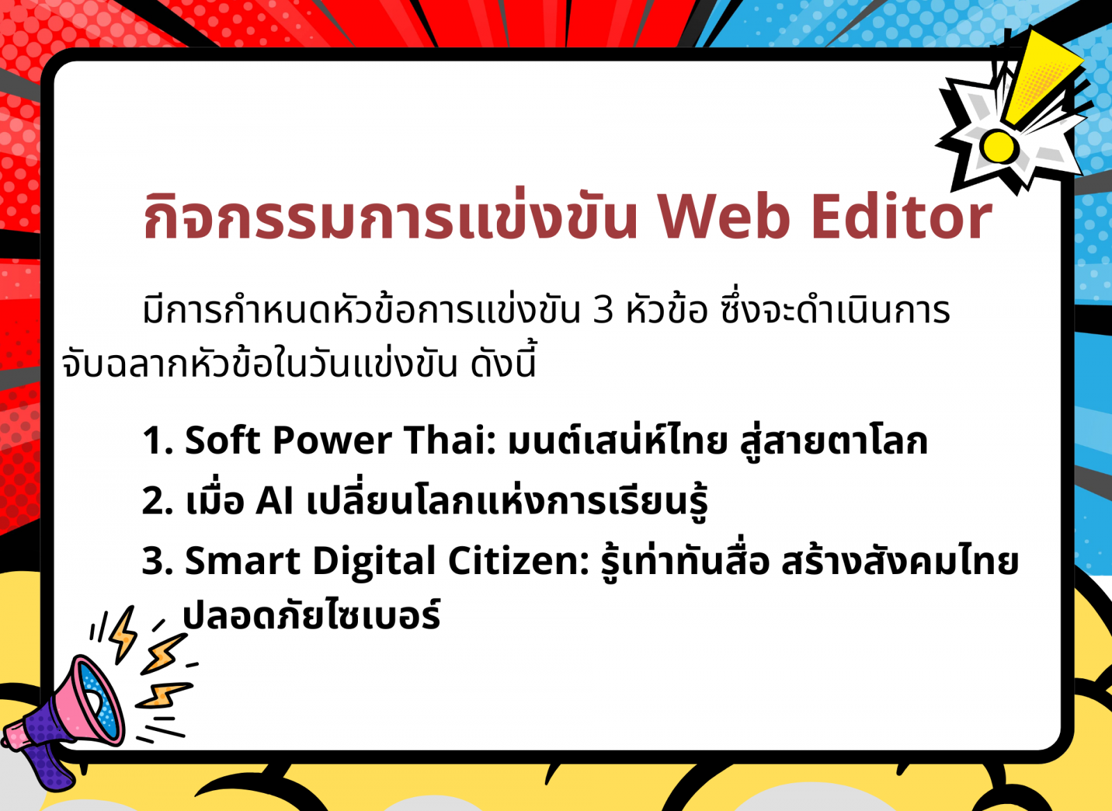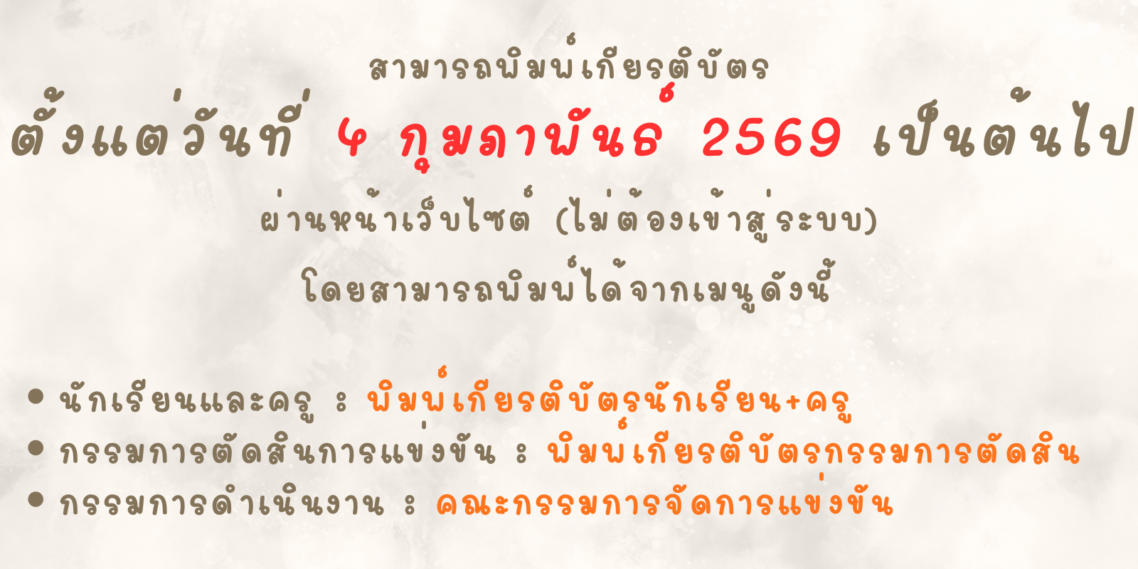 ประกาศจากศูนย์การแข่งขันกลุ่มสาระการเรียนรู้สังคมศึกษา ศาสนา และวัฒนธรรม