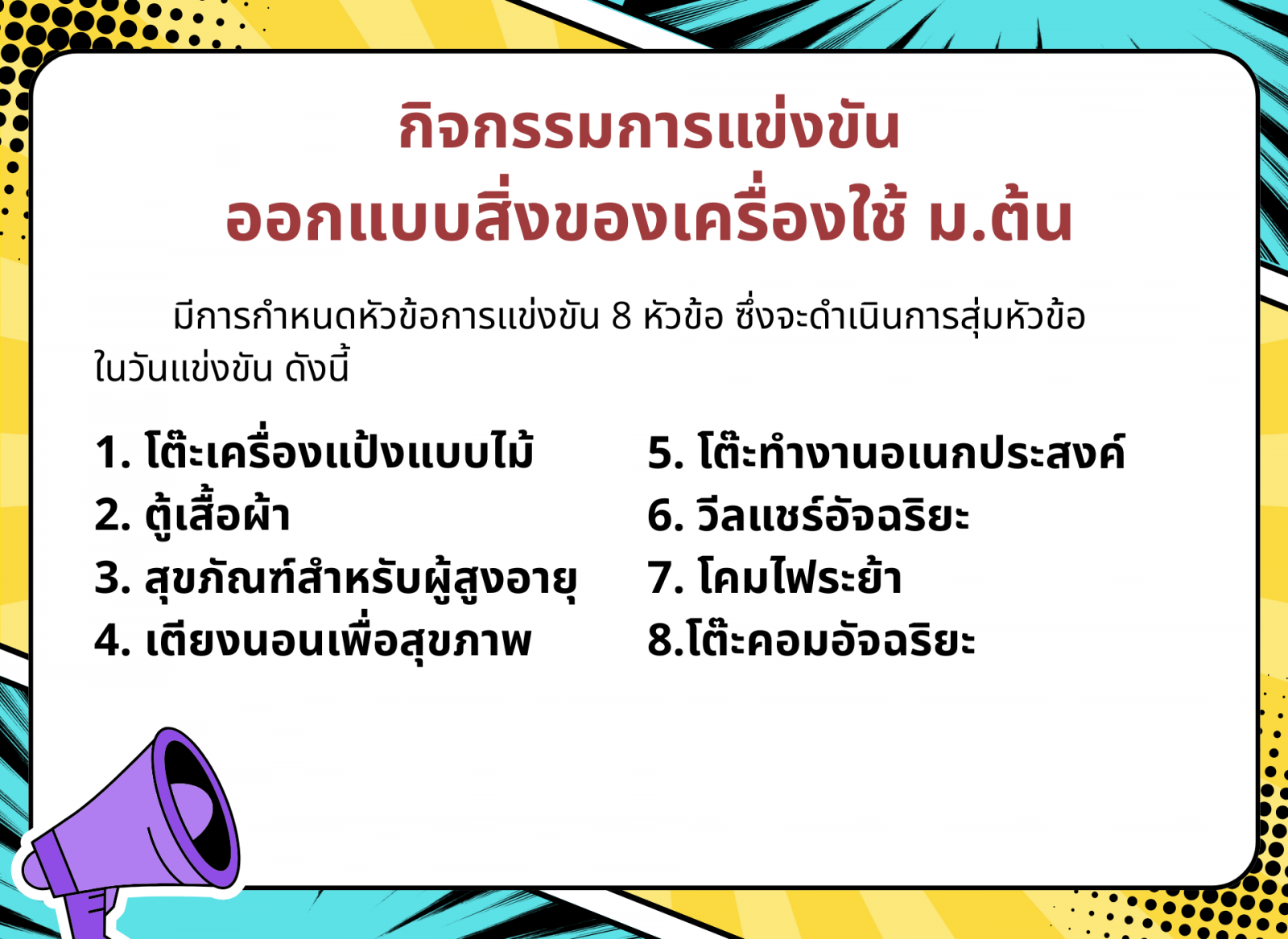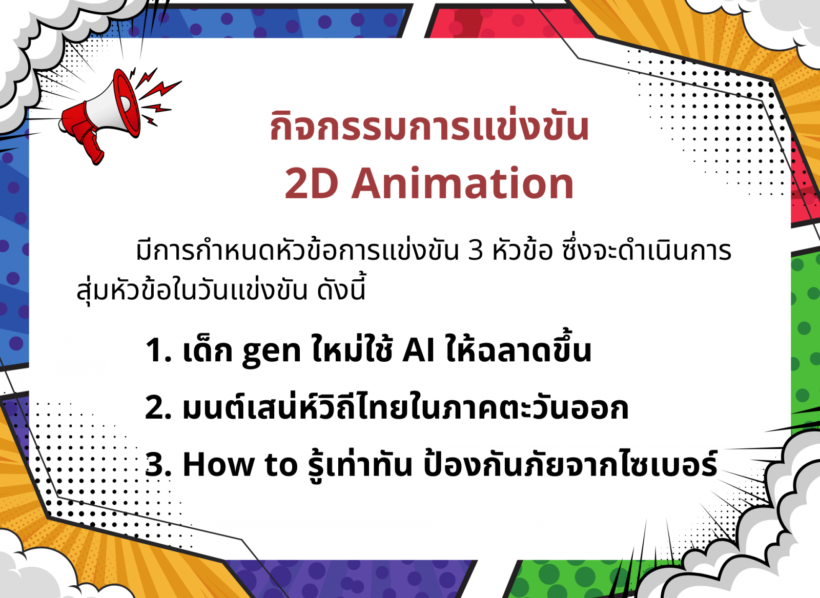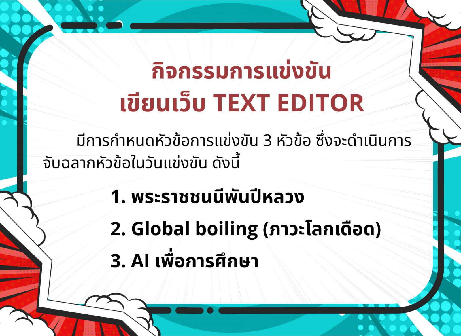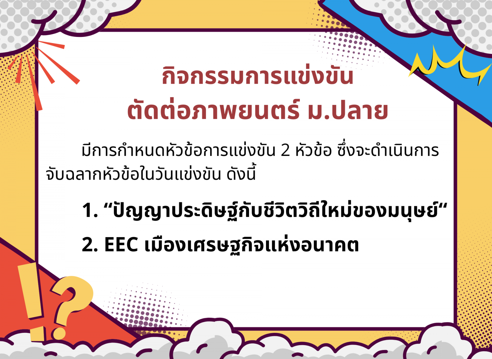 ประกาศจากศูนย์การแข่งขันกลุ่มสาระการเรียนรู้สังคมศึกษา ศาสนา และวัฒนธรรม