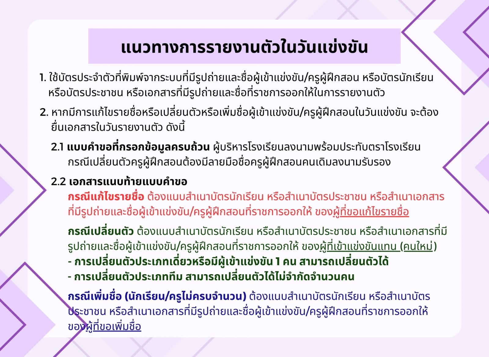 ** แจ้งเปลี่ยนแปลงแผนผังสนามแข่งขัน **