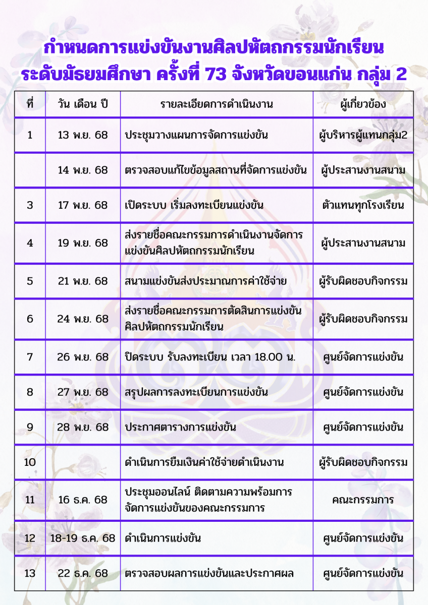 Excellent 2025 KK2 : งานศิลปหัตถกรรมนักเรียนระดับมัธยมศึกษา ครั้งที่ 73 จังหวัดขอนแก่น กลุ่ม 2