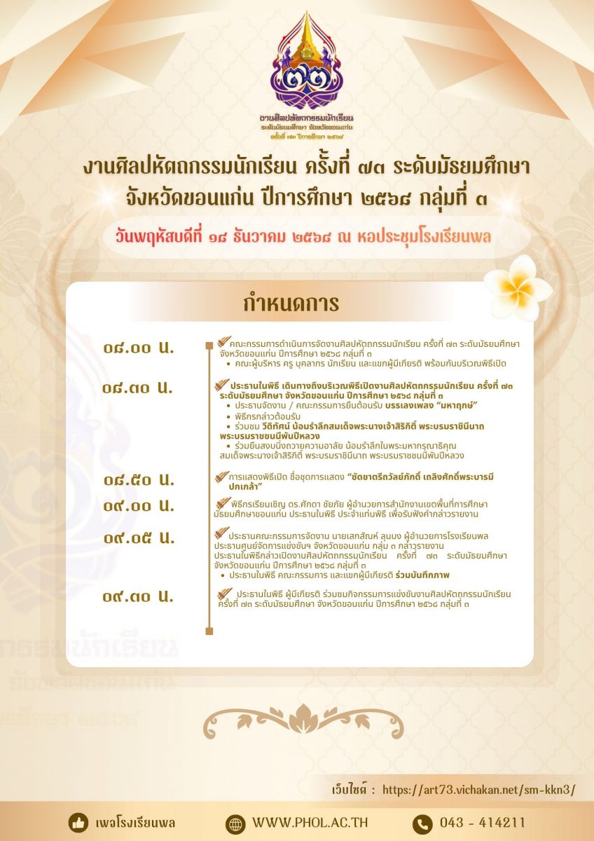 งานศิลปหัตถกรรมนักเรียน ปีการศึกษา 2568 ระดับเขตพื้นที่การศึกษา สพม. ขอนแก่น [กลุ่ม สพม.ขอนแก่น 3]