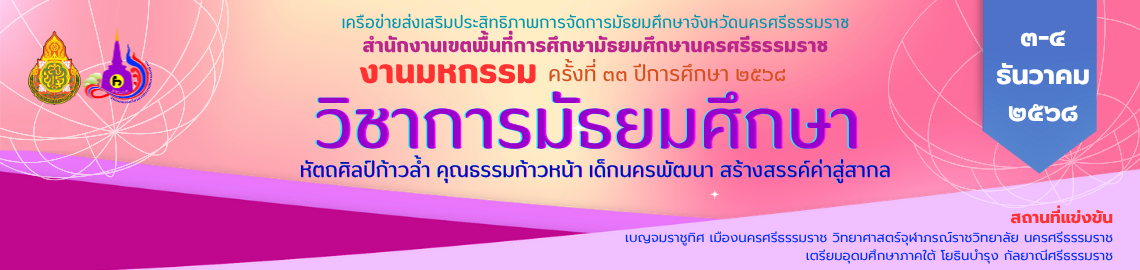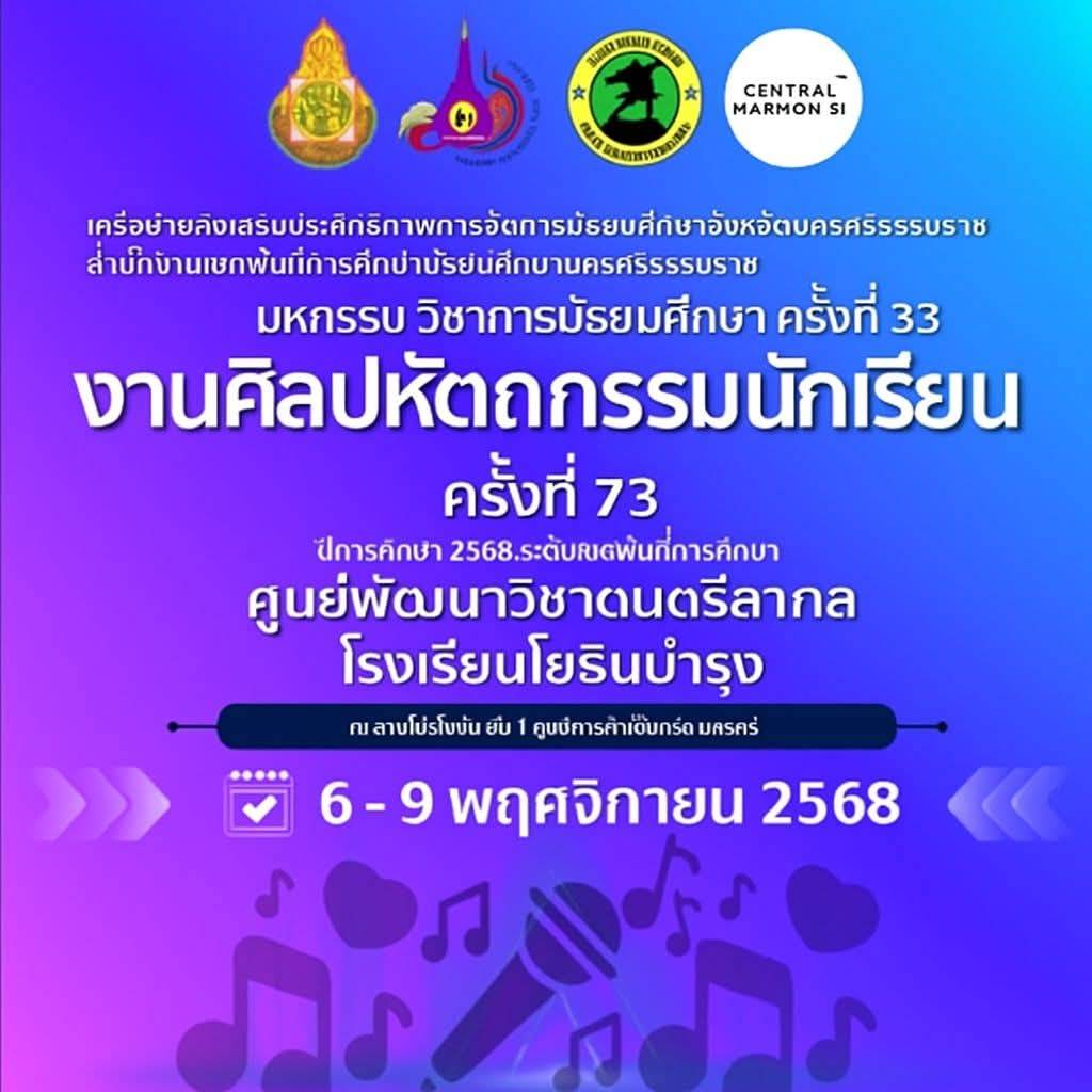 ** สาระศิลปะ-ดนตรีสากล ดำเนินการแข่งขัน วันที่ 6 - 9 พ.ย. 2568 ณ ลานโปรโมชั่น ชั้น 1 เซ็นทรัล นครศรี