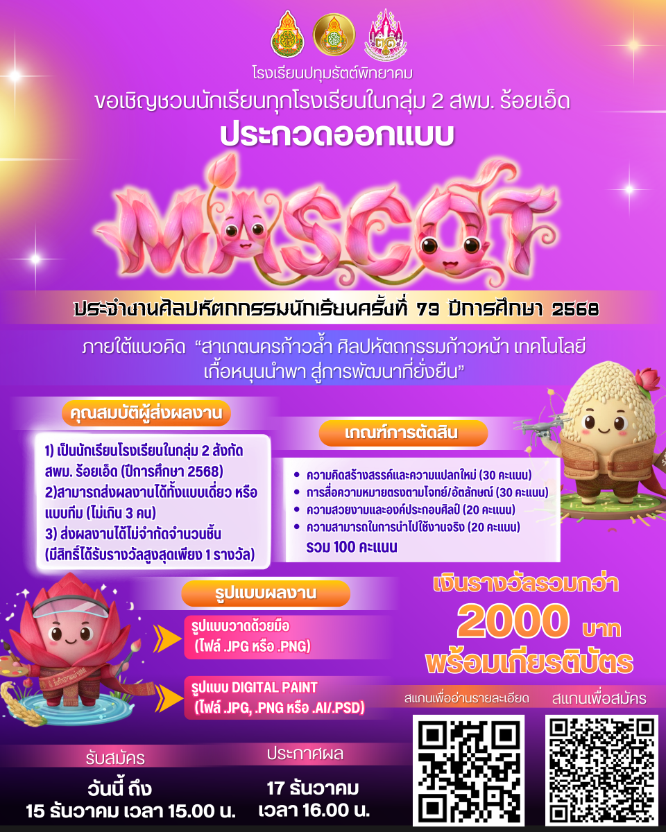 งานศิลปหัตถกรรมนักเรียน ปีการศึกษา 2568 ระดับเขตพื้นที่การศึกษา สพม. ร้อยเอ็ด [กลุ่ม สพม.ร้อยเอ็ด 2]
