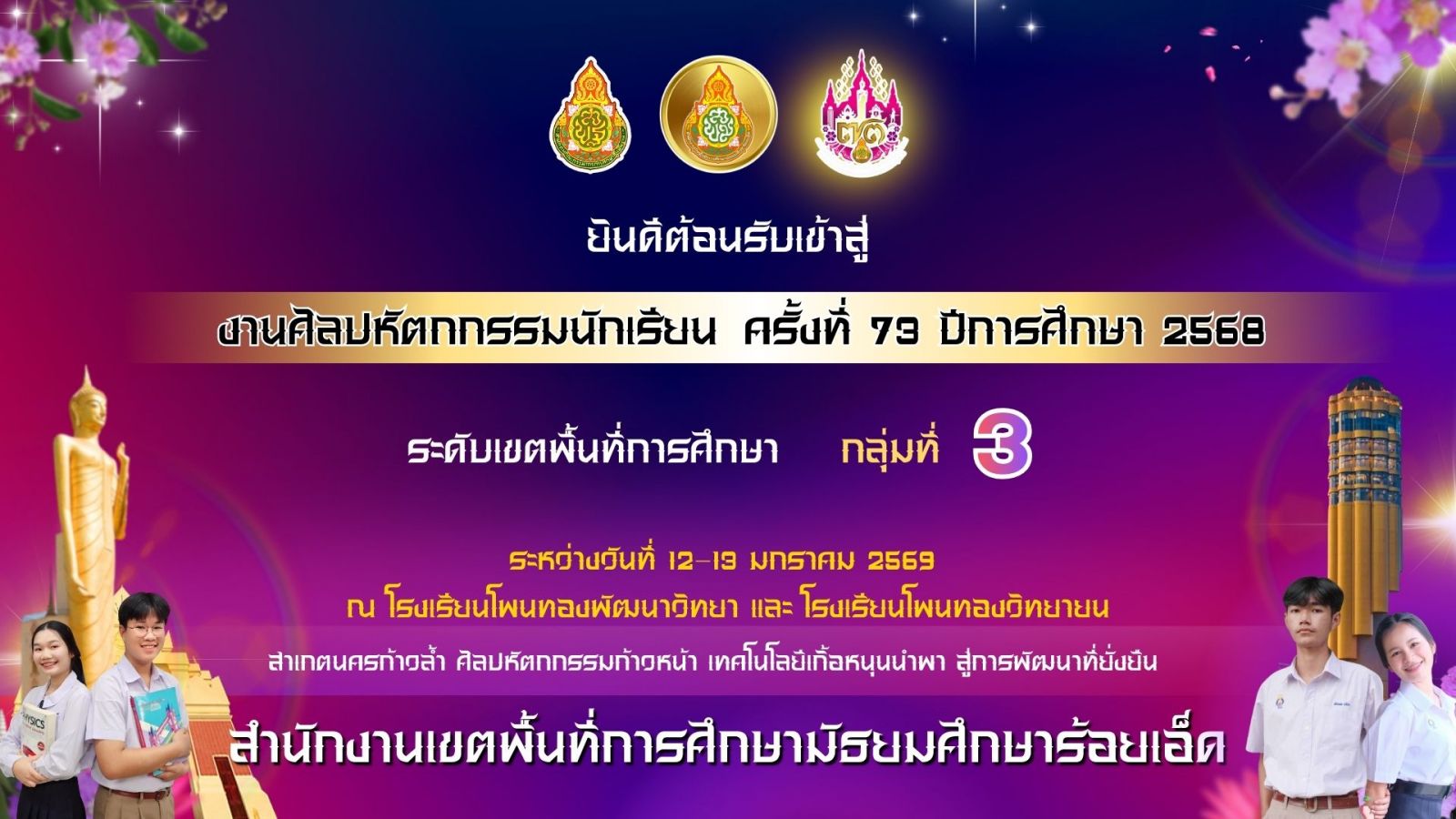 งานศิลปหัตถกรรมนักเรียน ปีการศึกษา 2568 ระดับเขตพื้นที่การศึกษา สพม. ร้อยเอ็ด [กลุ่ม สพม.ร้อยเอ็ด 3]
