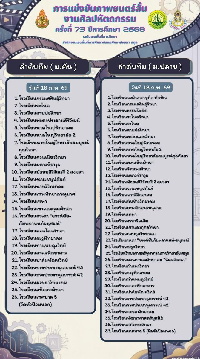 รายการแข่งขันงานศิลปหัตถกรรมนักเรียน ครั้งที่ 73 ปีการศึกษา 2568