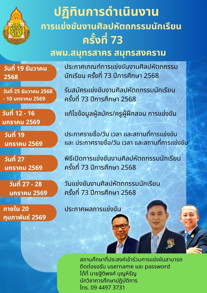 เว็ปไซต์สมัครการแข่งขันงานศิลปหัตถกรรมนักเรียน ครั้งที่ 73