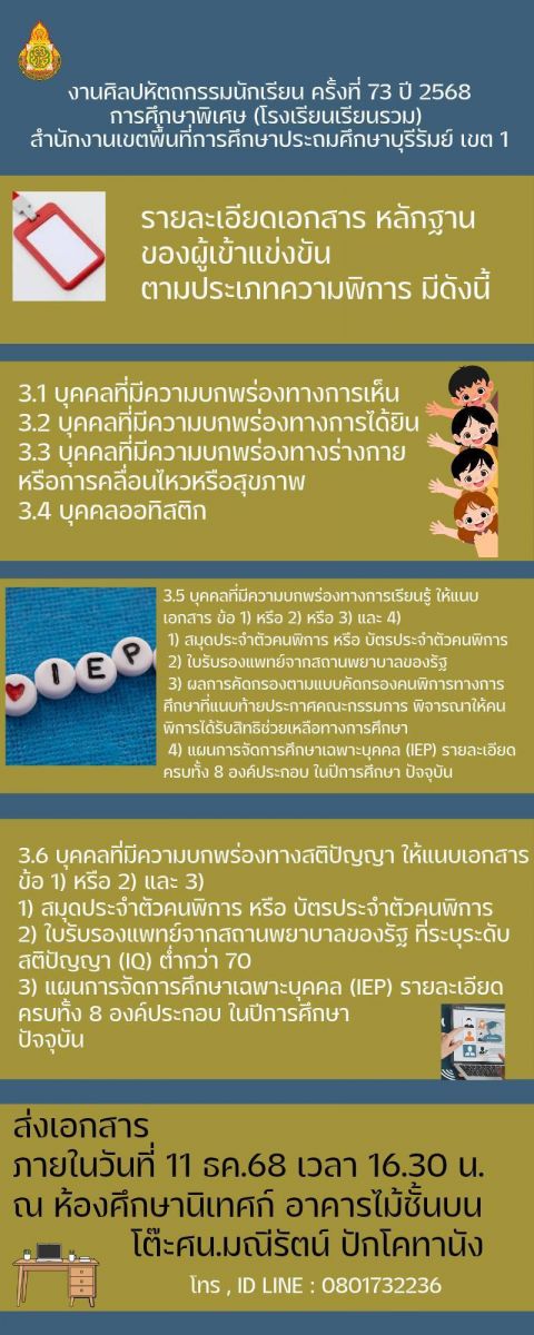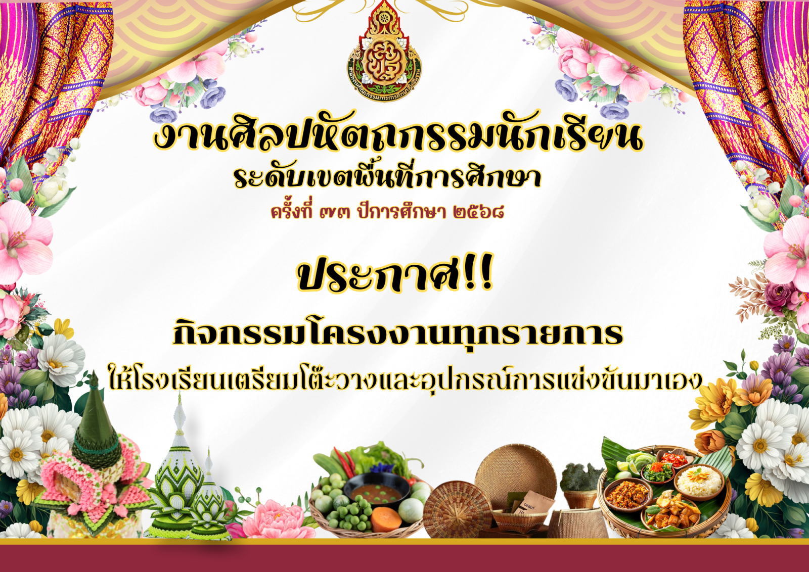 กำหนดงานศิลปหัตถกรรมนักเรียนระดับเขตพื้นที่การศึกษา ครั้งที่ 73 ปีการศึกษา 2568
