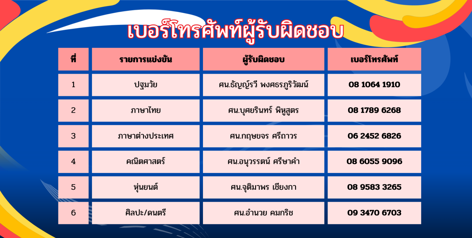 ลำดับการแข่งขันงานศิลปหัตถกรรมนักเรียน