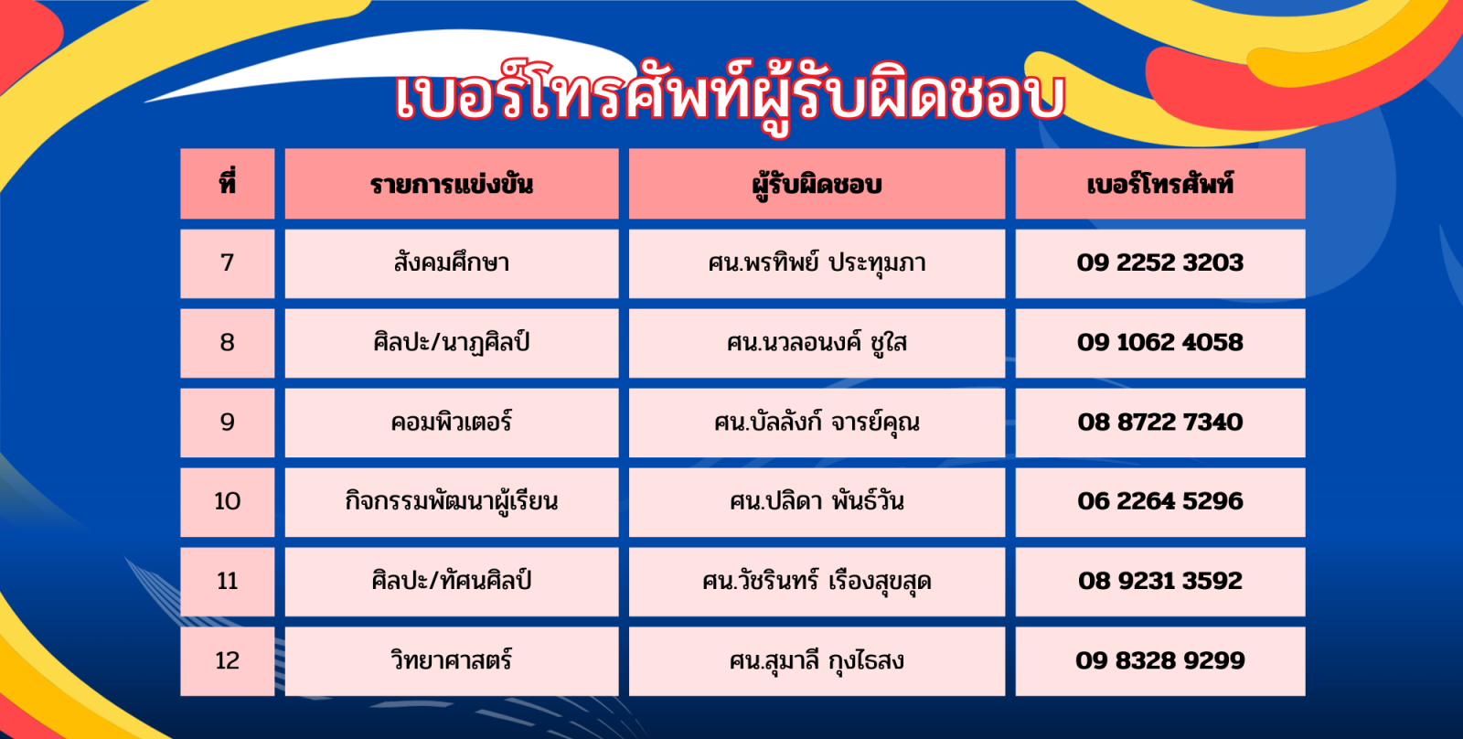 รายชื่อ น.ร. ครู แต่ละกิจกรรม