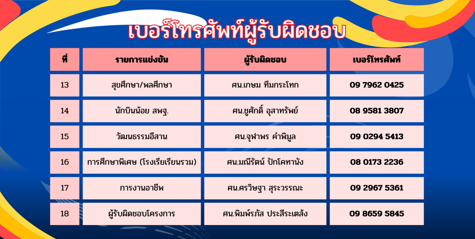 สูจิบัตร รายละเอียดสนามแข่งขัน การแข่งขันงานศิลปะหัตกรรมนักเรียน ระดับเขตพื้นที่การศึกษา ครั้งที่ ๗๓ ปีการศึกษา ๒๕๖๘