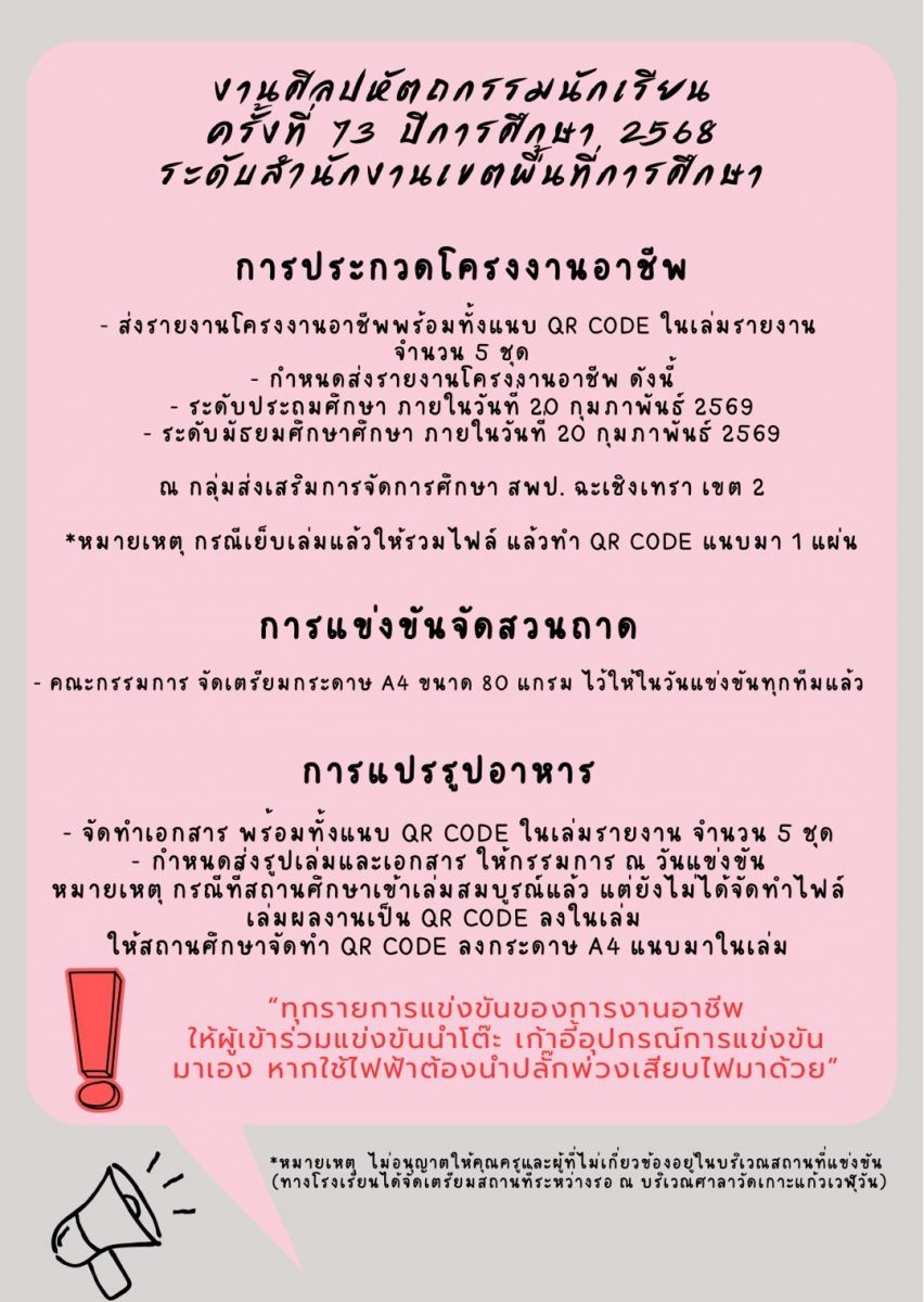 งานศิลปหัตถกรรมนักเรียนระดับเขตพื้นที่การศึกษา ครั้งที่ 73 ปีการศึกษา 2568 (ฉะเชิงเทรา 2 )
