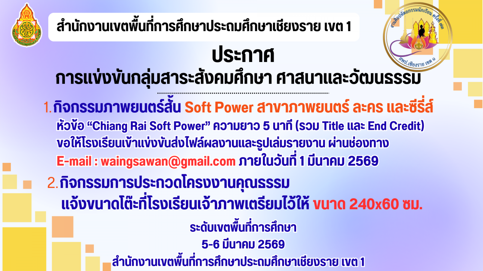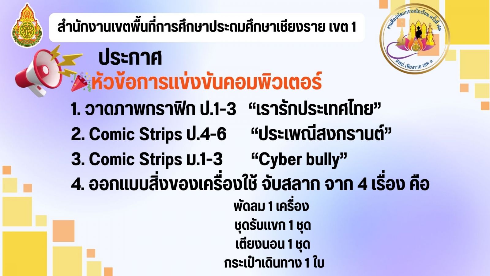 รายละเอียด เพิ่มเติม การแข่งขันกิจกรรมปฐมวัย https://drive.google.com/file/d/1pynjMutwmYejzHUS6ehtXi0Sa85IFqUN/view?usp=sharing