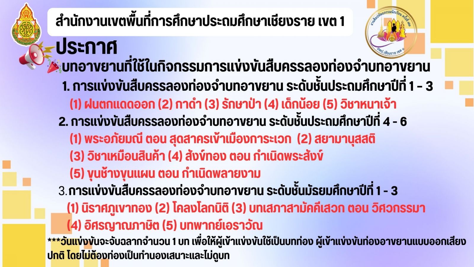 ประกาศฯ หัวข้อการแข่งขันสืบครรลองท่องจำอาขยาน