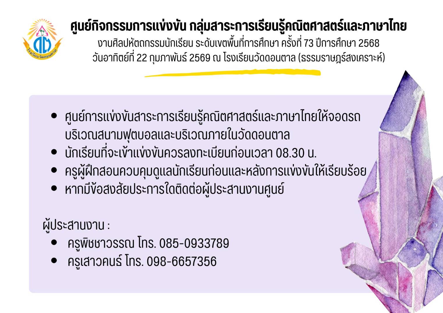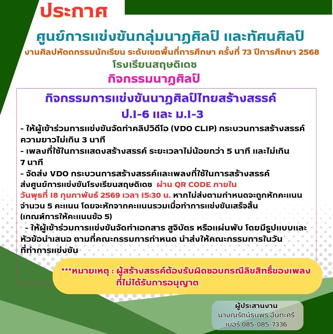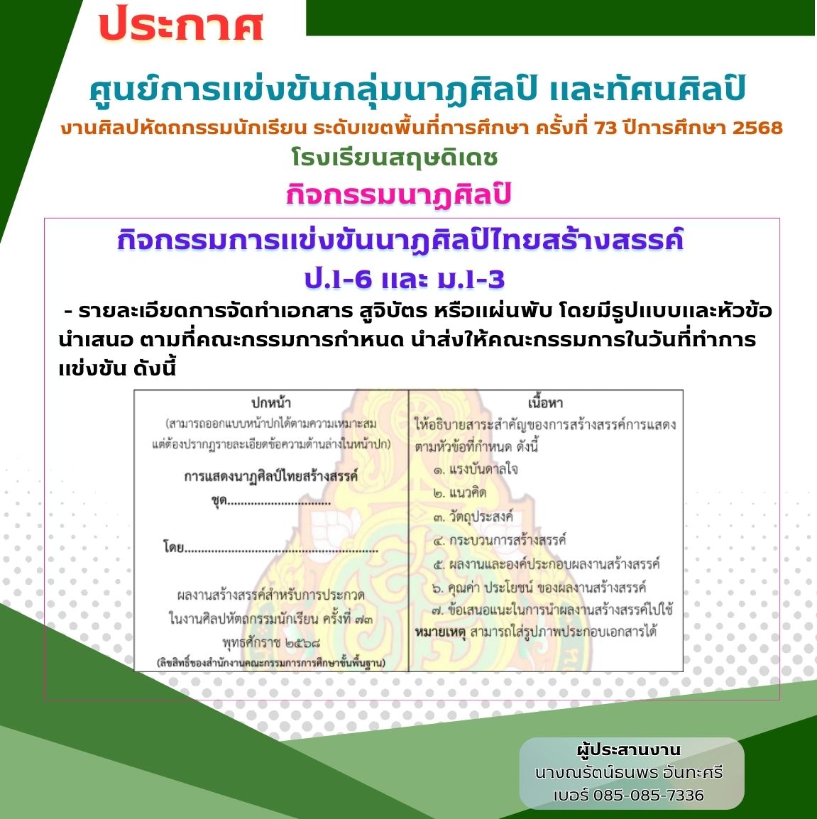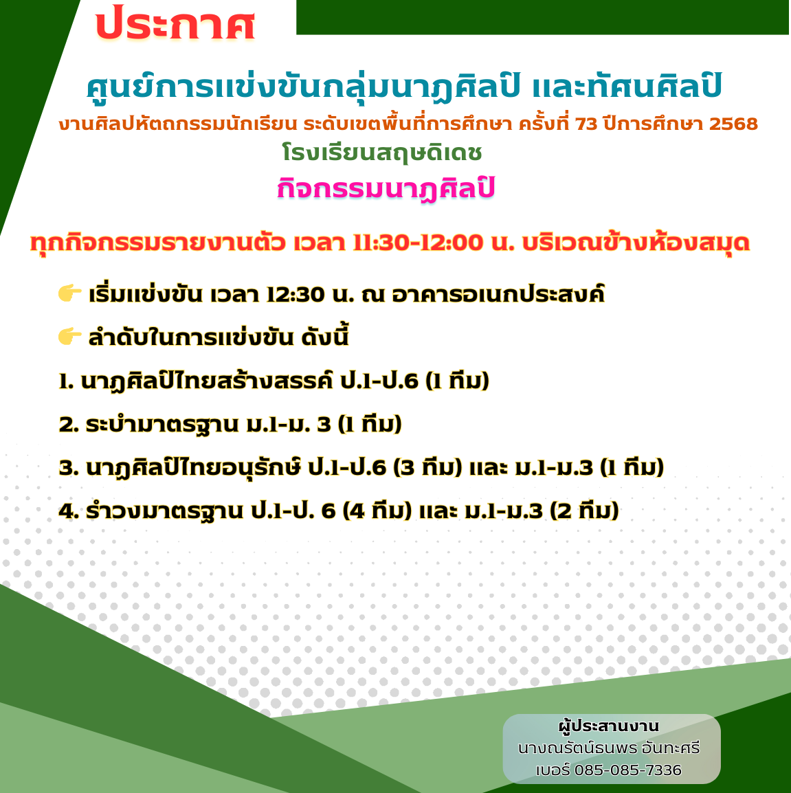 ประกาศการจัดแข่งขันงานศิลปหัตถกรรมนักเรียน