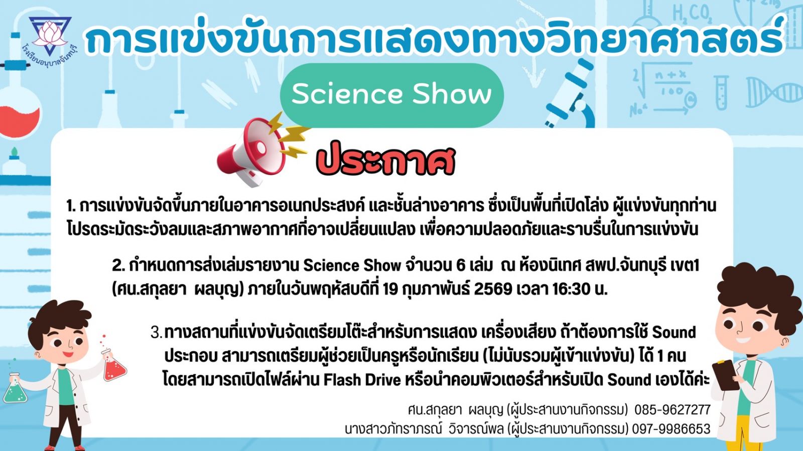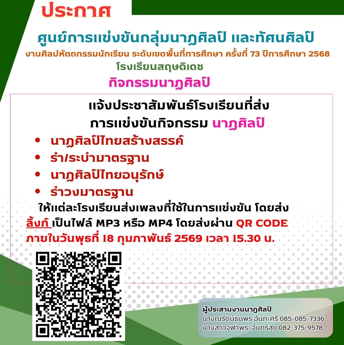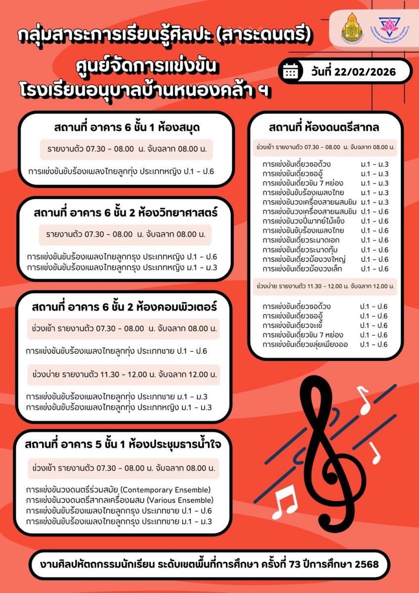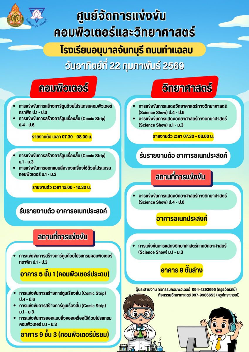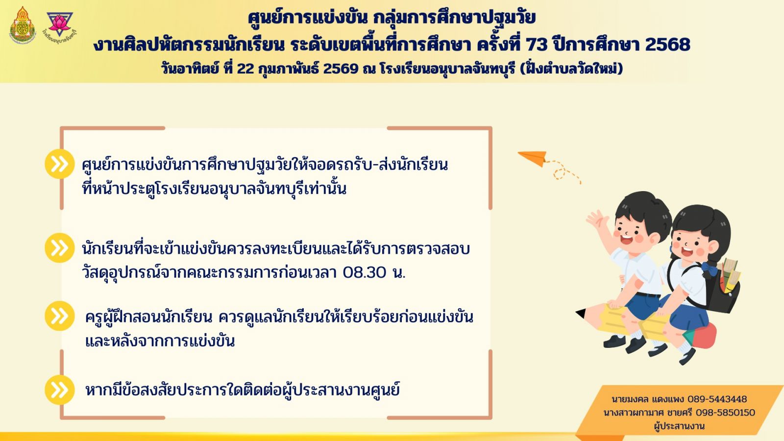 ประกาศจากศูนย์การแข่งขันโรงเรียนอนุบาลจันทบุรี : ปฐมวัย