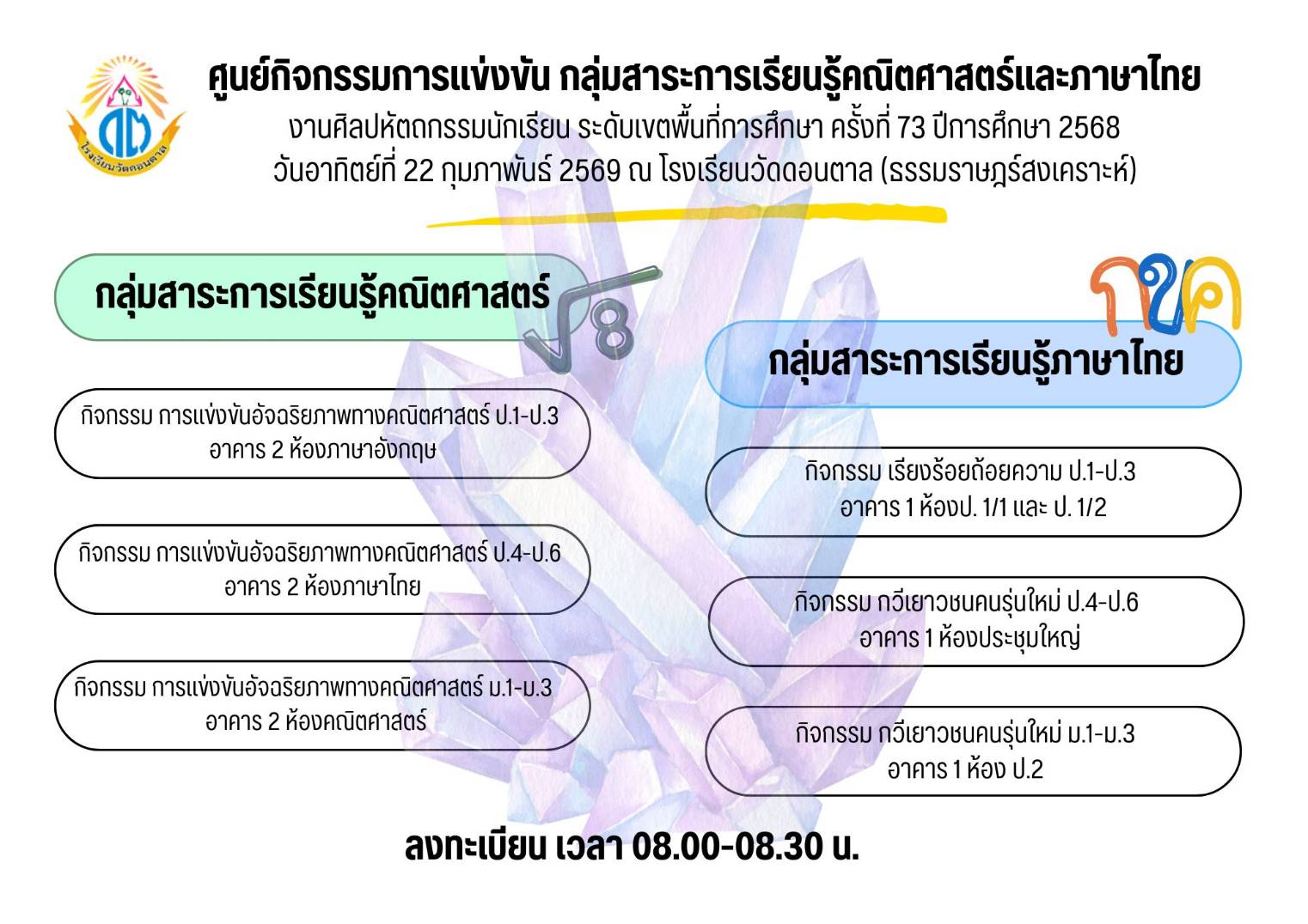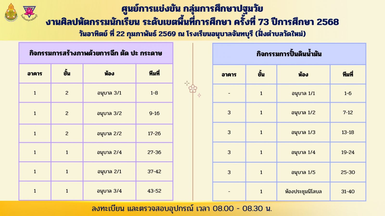 งานศิลปหัตถกรรมนักเรียนระดับเขตพื้นที่การศึกษา ครั้งที่ 73 ปีการศึกษา 2568 สำนักงานเขตพื้นที่การศึกษาประถมศึกษาจันทบุรี เขต 1