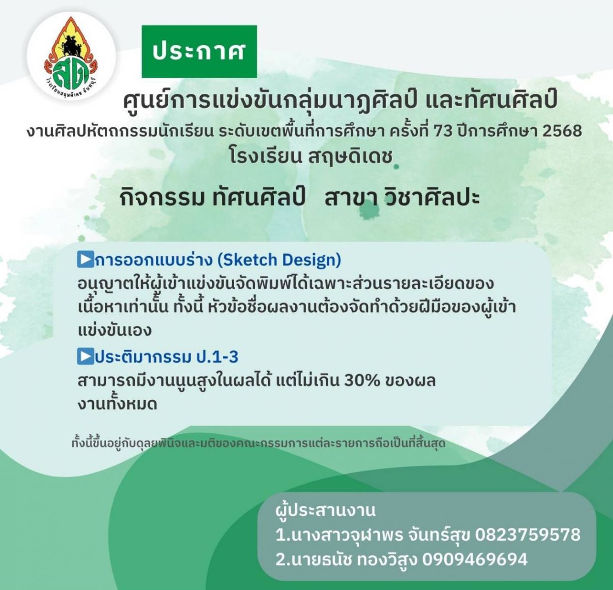 ข่าวประชาสัมพันธ์จากโรงเรียนสฤษดิเดช