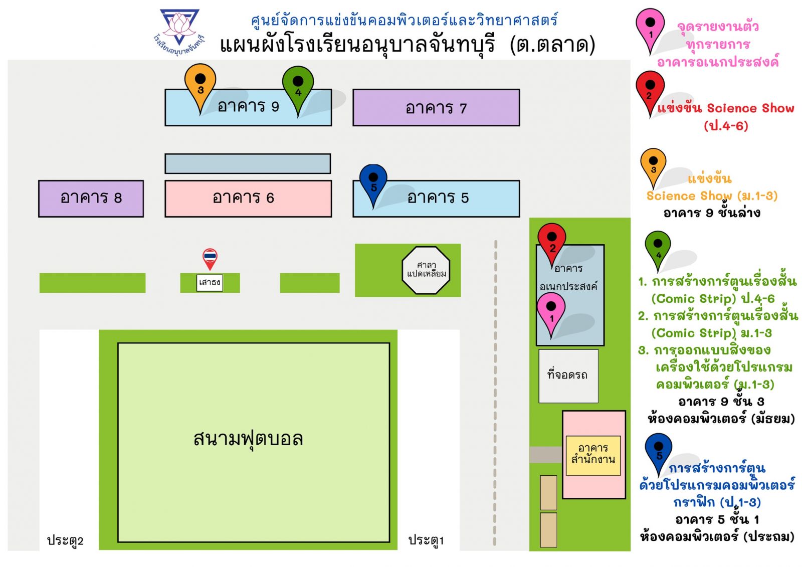 ประชาสัมพันธ์แผนผังสถานที่แข่งขันของศูนย์การแข่งขันคอมพิวเตอร์และวิทยาศาสตร์