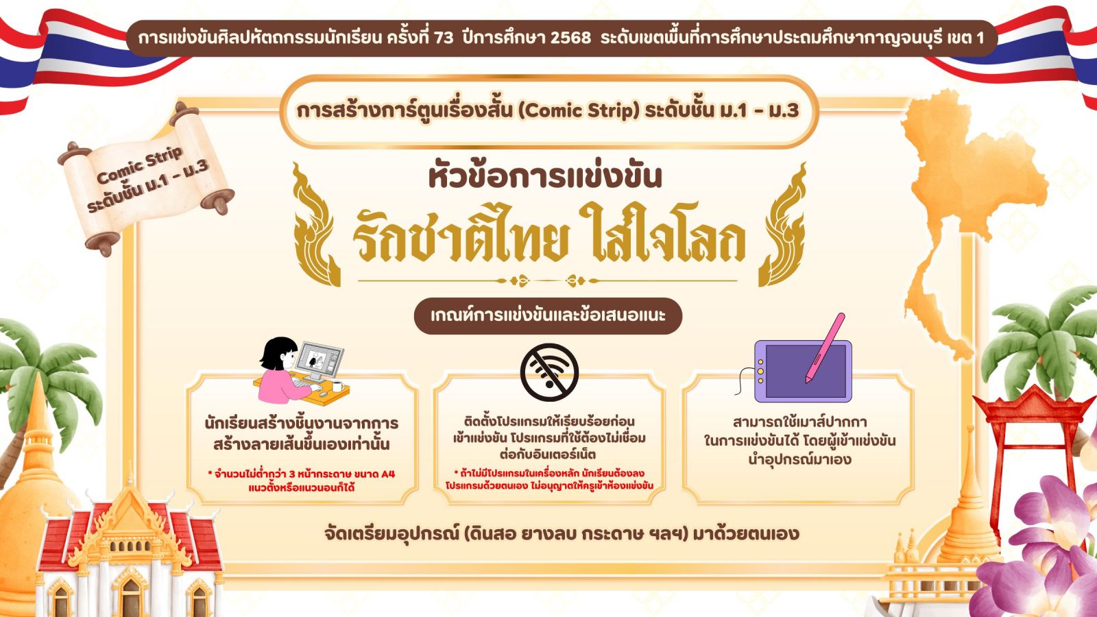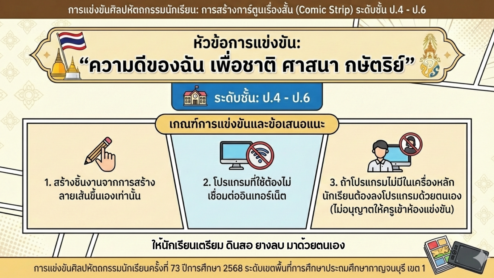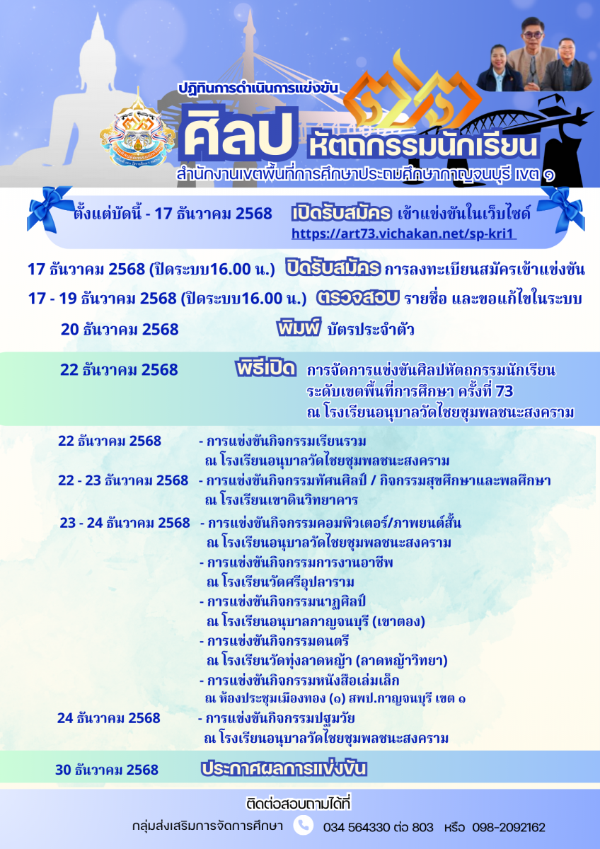 ปฎิทินการจัดการแข่งขันงานศิลปหัตถกรรมนักเรียน ระดับเขตพื้นที่การศึกษา ครั้งที่ 73 ปีการศึกษา 2568