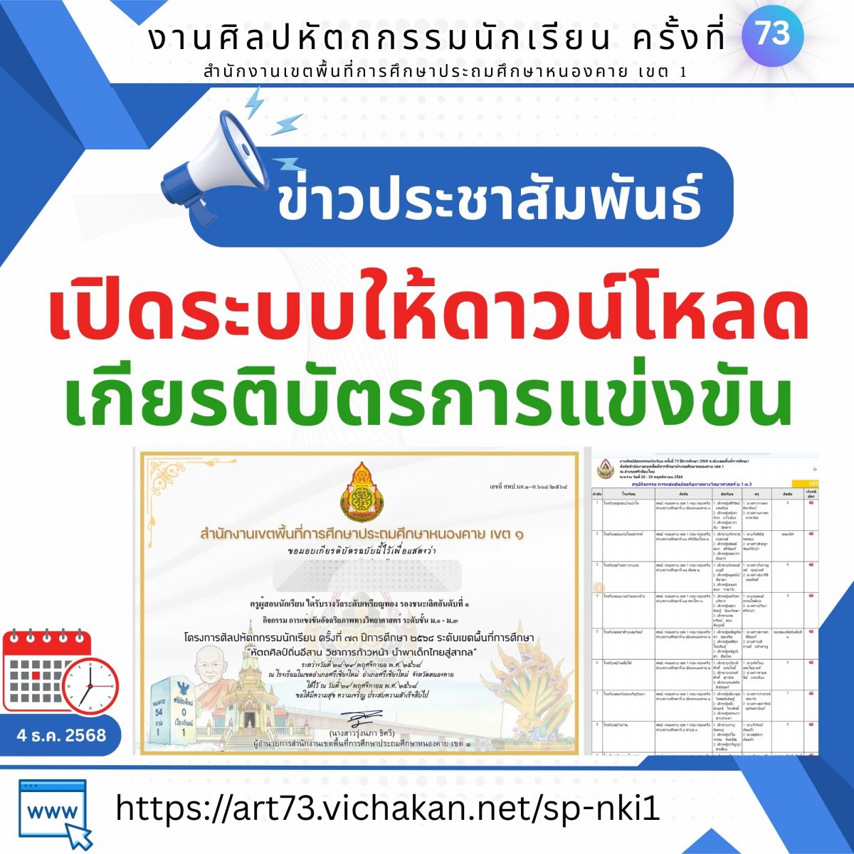 ประกาศการจัดการแข่งขันงานศิลปหัตถกรรมนักเรียน ครั้งที่ 73