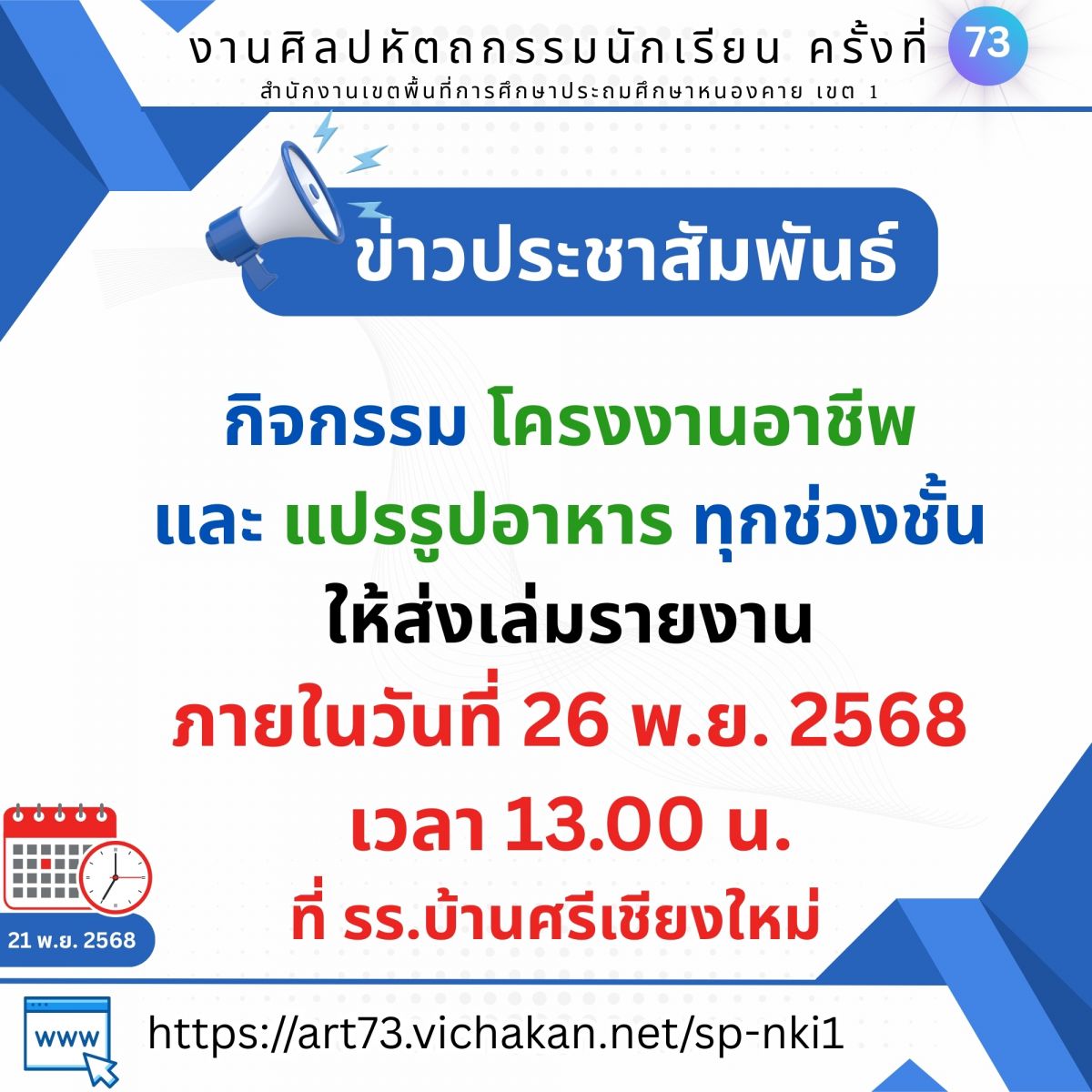 งานศิลปหัตถกรรมนักเรียน ปีการศึกษา 2568 ระดับเขตพื้นที่การศึกษา สพป. หนองคาย เขต 1