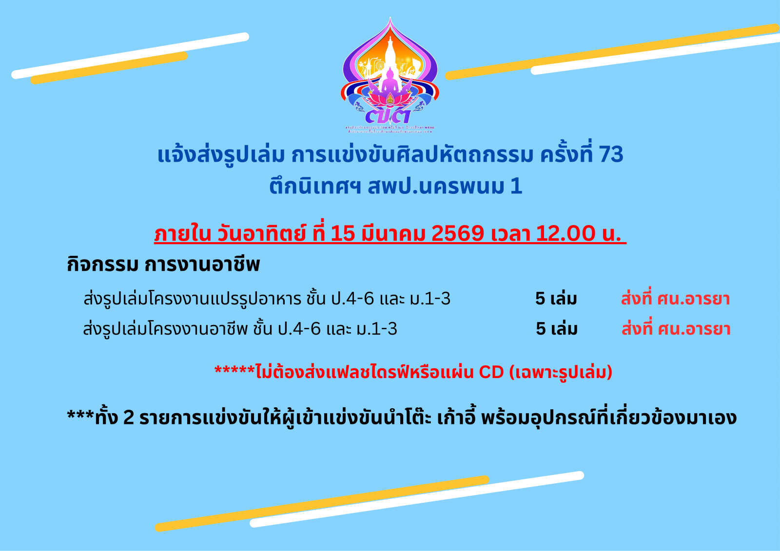 งานศิลปหัตถกรรมนักเรียน ปีการศึกษา 2569 ระดับเขตพื้นที่การศึกษา สพป. นครพนม เขต 1
