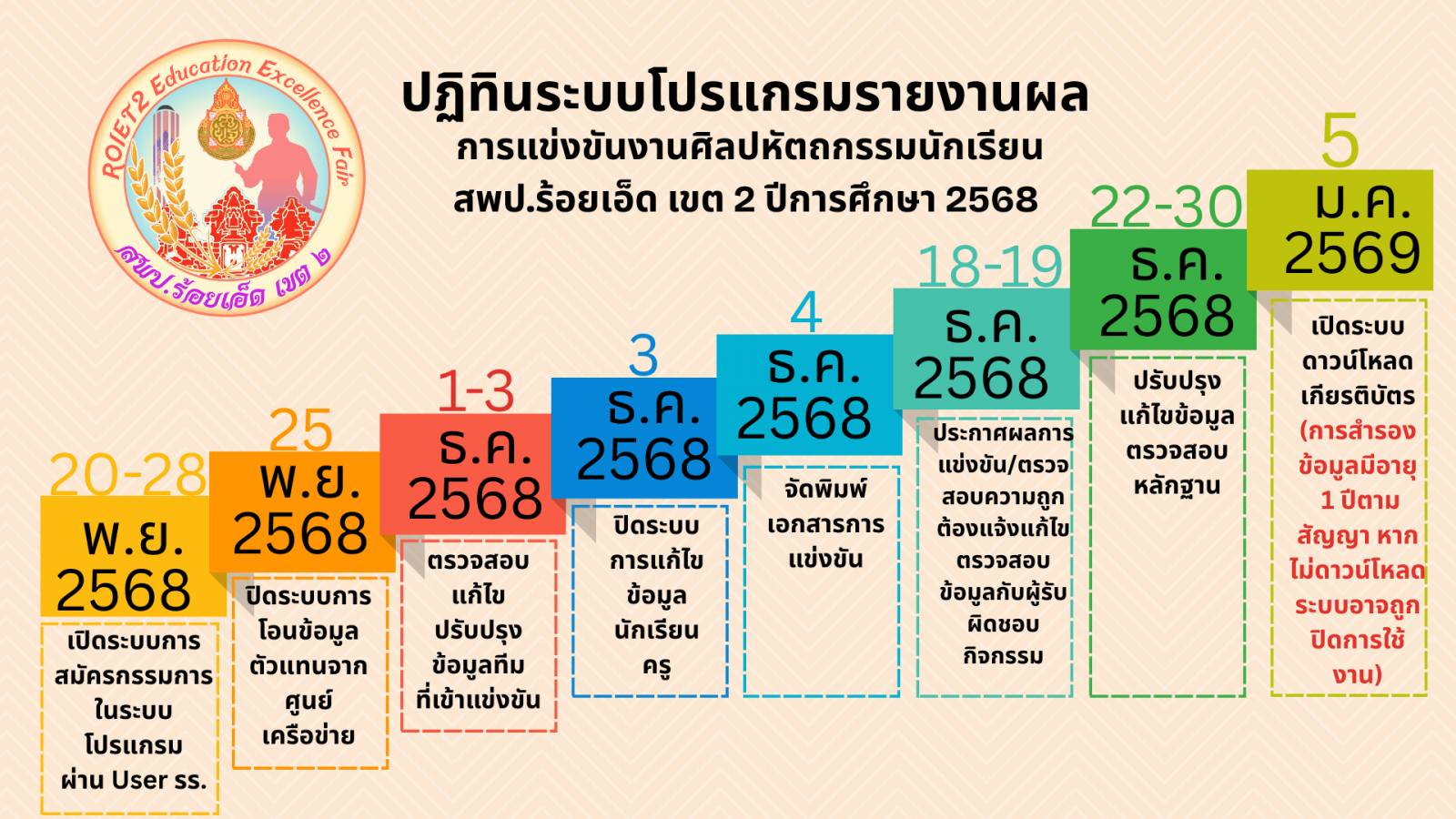 การปรับปฏิทินการดำเนินงานและเกณฑ์การแข่งขันของกิจกรรมและรายการเพิ่มเติม การแข่งขันงานศิลปหัตถกรรมนักเรียน ระดับเขตพื้นที่การศึกษา ปีการศึกษา 2568
