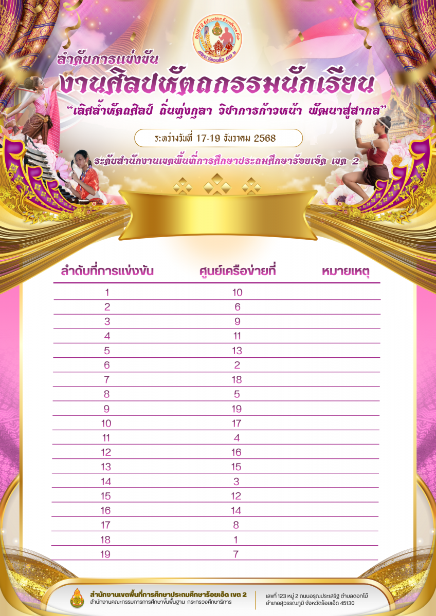 การจัดการแข่งขันงานศิลปหัตถกรรมนักเรียน "เลิศล้ำหัตถศิลป์ ถิ่นทุ่งกุลา วิชาการก้าวหน้า พัฒนาสู่สากล " ปีการศึกษา 2568