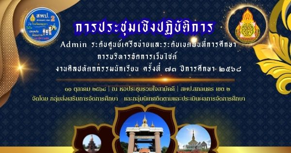ประชาสัมพันธ์...ขอเชิญประชุมเชิงปฏิบัติการ Admin ระดับศูนย์เครือข่ายที่ 1 – 20 และการศึกษาเอกชน โดยให้บุคลากรที่ทำหน้าที่ Admin ระดับศูนย์เครือข่ายเข้าร่วมประชุม ศูนย์เครือข่ายละ 2 คน เข้าร่วมการประชุม ในวันที่ 10 ตุลาคม 2568 เวลา 08.30 น. – 16.30 น. ณ ห้องประชุมรวมใจสามัคคี  สำนักงานเขตพื้นที่การศึกษาประถมศึกษาสกลนคร เขต 2 โดยให้นำคอมพิวเตอร์โน๊คบุ๊ค และสายไฟฟ้าปลั๊กพ่วงมาด้วย โดยให้ผู้เข้าร่วมการประชุมลงทะเบียน ผ่าน QR Code