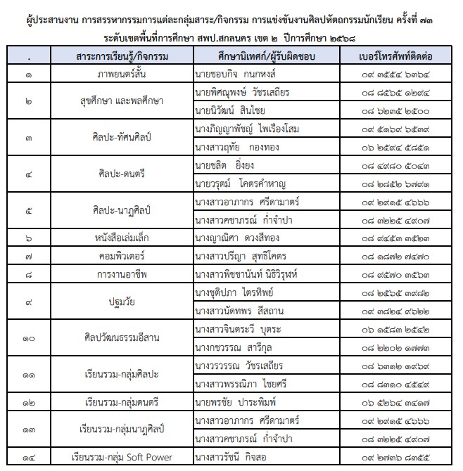 งานศิลปหัตถกรรมนักเรียนระดับเขตพื้นที่การศึกษา สพป.สกลนคร เขต 2 ครั้งที่ 73 ปีการศึกษา 2568